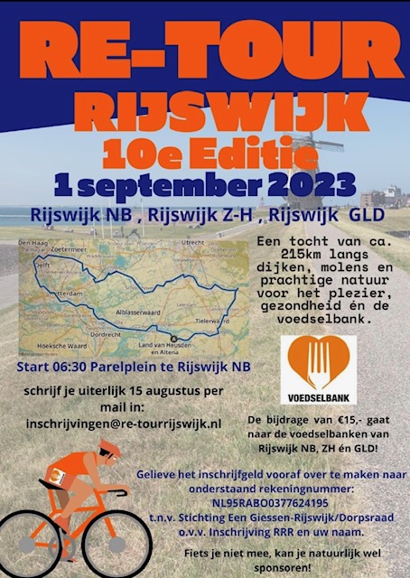 Β ππ-ππππ πππ ππππ πΒ Vrijdag 1 september vindt alweer de 10de editie van de Re-Tour Rijswijk plaats! Deze tocht van ca. 215 km langs dijken, molens en prachtige natuur start in Rijswijk in Noord-Brabant en gaat langs Rijswijk in Zuid-Holland en Rijswijk in Gelderland. We hebben al een leuke club met aanmeldingen. Wil jij ook graag [...]